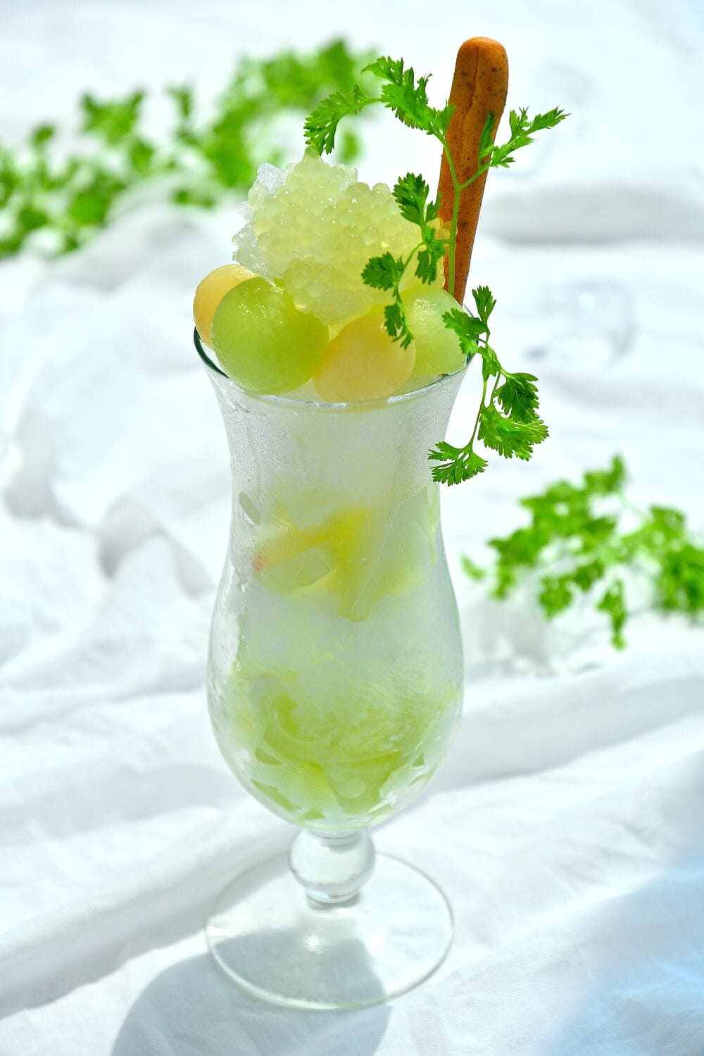 旬のハネデューメロンとタピオカをのせてココナッツミルクシロップをかけました