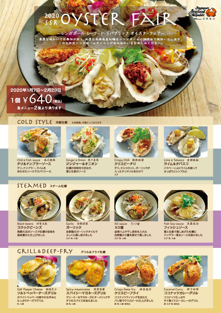 濃厚な味わいで栄養価が高く、肉厚な兵庫県産牡蠣を使用し、シンガポールならではの調理法で多彩に提供いたします。冬季限定、シンガポールテイストの旬な味わいをお楽しみください。