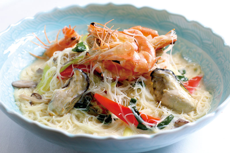 ブランドオーナーが奨めるホワイトビーフンは、シンガポールで専門店ができるほど人気の料理。魚介の濃厚な旨みに豆乳を組み合わせた、スープ仕立てのビーフンは具材たっぷり、リピート必至!