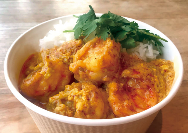 ココナッツミルクたっぷりのタイ風海老のイエローカレーとジャスミンライス