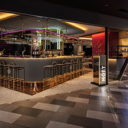 都心にいながらも浜離宮恩賜庭園の緑と水辺を身近に感じられるシーフードレストラン。店内からは東京のベイエリアを臨み、開放的なテラス席がリゾート地を彷彿とさせます。目を引くのはエントランス正面にあるアイランド型バーエリア。オリジナルのスペシャルドリンクでゲストをお迎えします。