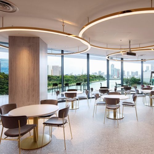 A large dining area where you can see the Hamarikyu Gardens in front of you and feel the breath of nature while staying in the city center. You can enjoy the view of the Bay Area from the window. When the weather is nice, you can see the Sky Tree Tower, and at dinner time you can enjoy the calm night view.